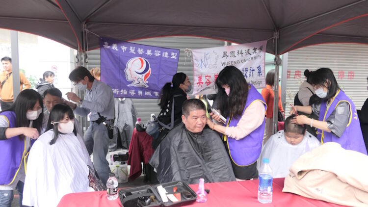圖:虎爺會行善團寒冬送暖餐車市集公益義剪活動 (辜士陞/攝影)