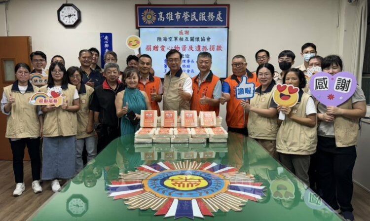陸海空軍相互關懷協會總會理事長李明聰,偕同高雄分會分會長王家駒及多位幹部,前往高雄市榮民服務處捐贈物資白米50包、慰問金1萬2,000元,由處長劉雅魁代表接受,並回贈感謝狀與紀念品,以表達誠摯謝意。這批物資與善款將轉送給轄區內的弱勢榮民及遺孤,讓他們在秋節前夕感受到社會的關懷與祝福。