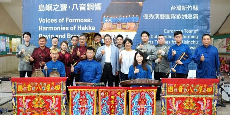 新竹縣政府今(16)日上午舉行2025歐洲台灣文化年行前記者會,由縣長楊文科率領縣內三大傑出演藝團隊「田屋北管八音團」、「新竹北埔八音團」及「銅好重奏團BRASSMEN」,宣布將於9月17日啟程,赴奧地利與斯洛伐克展開3場國際演出,呈現臺灣多元文化的獨特風貌。