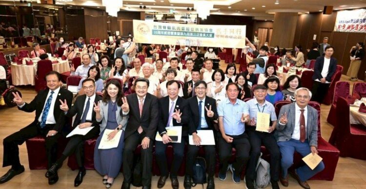 圖/SMA病友協會走過艱辛的20年,今隆重舉行感恩活動,衞福部長石崇良(右5 )、國健署長沈靜芬(左3)、高醫董事長陳建志(左6)、南六企業黃清山董事長(右3)及SMA病友協會創會理事長鐘育志(右6)等人共同見證SMA病友協會成立20週年。
