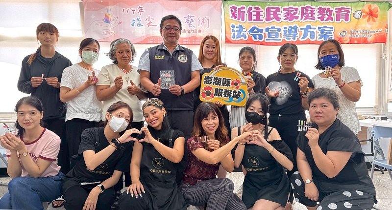 移民署中區事務大隊澎湖縣服務站結合澎湖縣新住民家庭服務中心,於9月21日辦理新住民家庭教育暨法令宣導課程。課程中除說明新住民日常生活常見規範與最新居、停留相關規定外,並特別安排美甲 DIY 手作體驗,與新住民一同體驗美甲實作課程,在輕鬆互動的教學中感受創作的樂趣。
