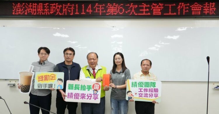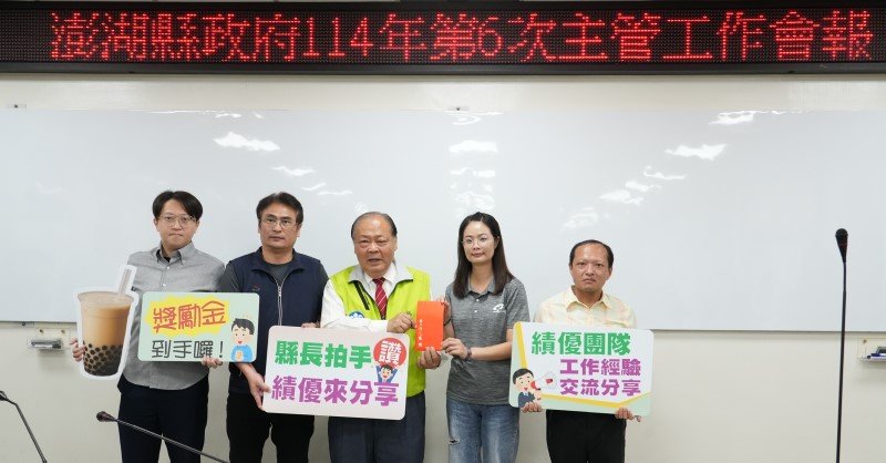 澎湖縣政府今(22)日召開主管工作會報,由縣長陳光復親自主持,逐一聽取各單位工作報告,並就重點業務做提示。會中,特別邀請為民服務績效評鑑績優單位農漁局種苗繁殖場分享海洋保育的創新作為,肯定他們在永續發展及為民服務上的卓越表現,透過推動民眾實際參與,深化大眾對海洋保育的認同與責任感。