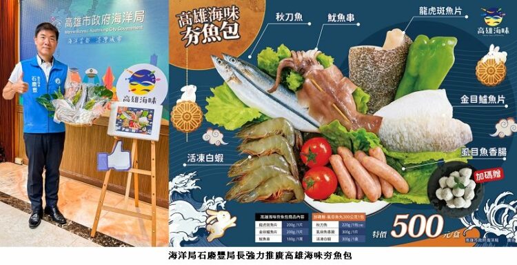 高雄市政府海洋局局長石慶豐表示,中秋節將至,海洋局特別籌組在地海味,推出應景又實惠的「高雄海味夯魚包」,要陪伴市民在連假團聚時享用佳餚。今(114)年組合特別網羅高雄遠洋漁船新鮮捕撈的秋刀魚與魷魚,以及本市養殖的龍虎斑、鱸魚、白蝦和虱目魚等優質漁產,共同組成七大品項,打造精選中秋組合,超值享受。石局長進一步指出,今年夯魚包特別強調「便利與營養兼具」,不論煎、煮、烤、炸都能快速料理,讓市民在忙碌的假期中也能輕鬆享受大海鮮味。尤其水產品含有豐富的優質蛋白質,不僅適合闔家大小共享,更能在品嚐美食之餘,吃得安心、健康又無負擔。