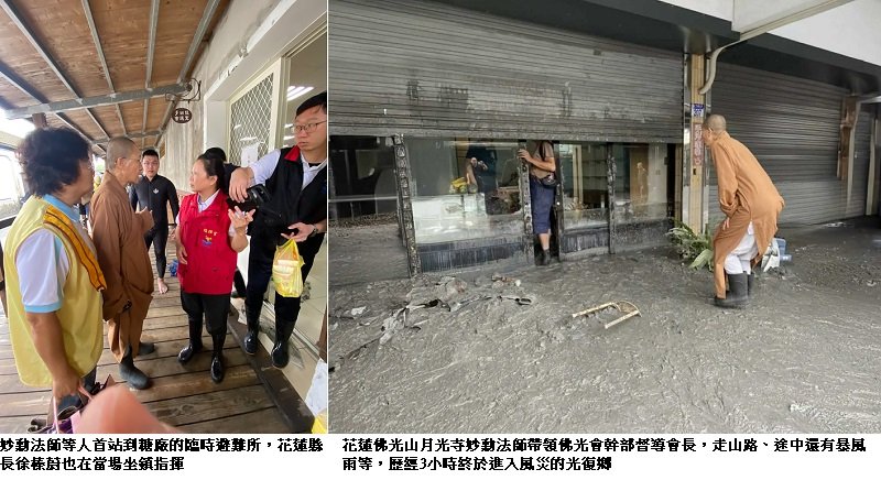 受颱風樺加沙帶來豪雨影響,花蓮縣光復鄉災情嚴重。佛光山住持心保和尚於23日第一時間指示全力協助,並由花蓮月光寺監寺妙勳法師率領佛光會幹部啟動關懷機制。國際佛光會署理會長慈容法師也宣布,中華總會將捐款200萬元作為救急之用。