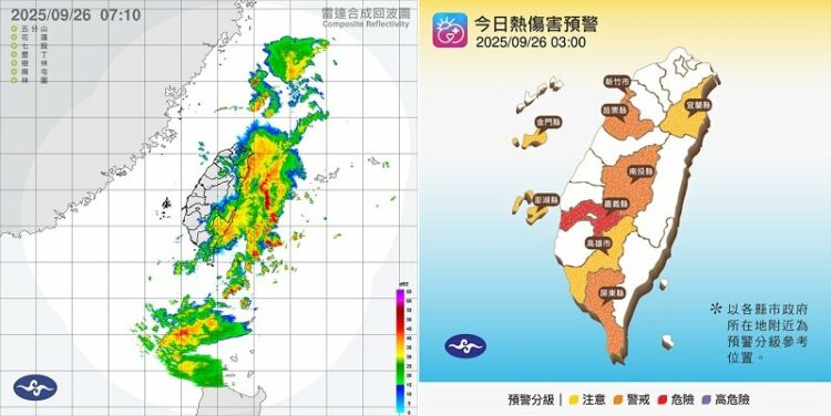 紫外線指數方面,週五新竹縣、新竹市、台中市、台南市、高雄市、屏東縣、連江縣為「高量級」;其餘縣市皆為「過量級」。