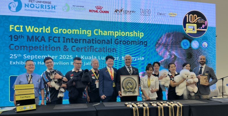 社團法人台灣畜犬協會(簡稱畜犬協會)於9月25日派員前往馬來西亞參加第3屆世界畜犬聯盟寵物美容錦標賽,榮獲團體賽冠軍,選手邱建榮並獲得本屆最佳美容師的榮耀,彰顯台灣寵物產業具世界級最佳水準。