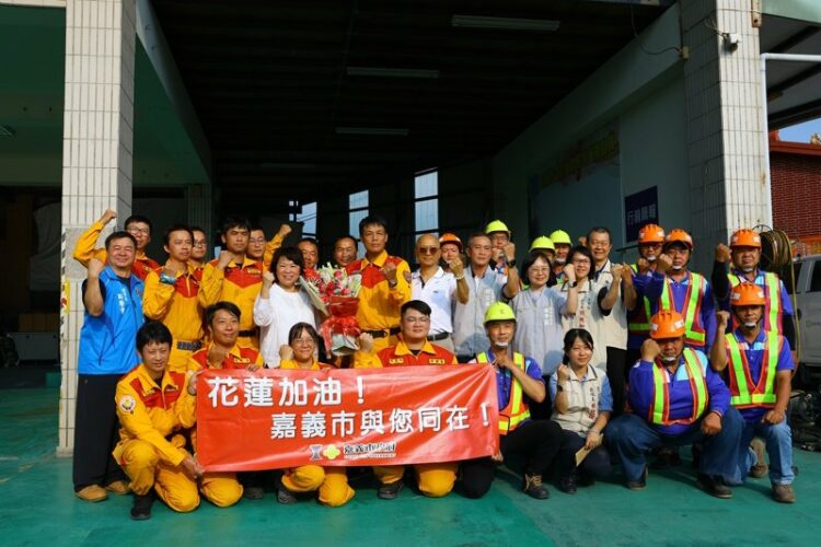 花蓮縣光復鄉在樺加沙颱風中受到重創,為協助花蓮搜救、清運家園等任務,嘉義市長黃敏惠責成市府各局處盤點救災人力、物力及資源,由環保局與消防局組成救援隊於9月26日一早奔赴花蓮,投入第一線災害搶救任務。今(29)日,嘉義市救援隊完成階段性任務,返抵嘉義市,黃敏惠市長偕同秘書長陳永豐,及環保局長蕭令宜、消防局長郭立昌迎接救援隊伍,感謝他們以專業為花蓮送去溫暖,是「充滿愛與專業的超人」,也盼花蓮鄉親能平安,能在各界力量支持下,早日恢復日常。