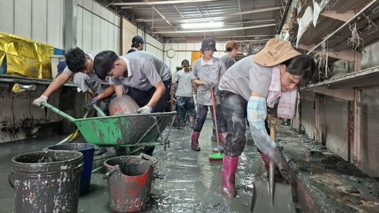 護理科張櫻慈老師因班上有兩位同學來自光復,特別趁著連假號召同學同行。抵達後,他們加入慈濟志工團隊,走入受災嚴重的居民家中協助。同行的護理科五年級李祥安說:「人多力量大,大家互相幫忙,希望能儘快把屋裡厚重泥沙清出來。雖然辛苦,但我們都想盡快幫居民恢復生活。」護理系同學 Califlores Andrei L 則分享:「因為喜歡幫助別人,加上自己也曾有類似經驗被人協助,所以更珍惜這次機會。希望我小小的力量,也能讓居民早日回到正常生活。」護理科五年級方磊則表示,最難的就是「堅持」,剛開始很有活力,但隨著時間過去,覺得泥土越來越重、越來越累。不過想到自己來就是為了付出,就咬緊牙關堅持下去。