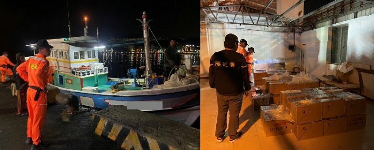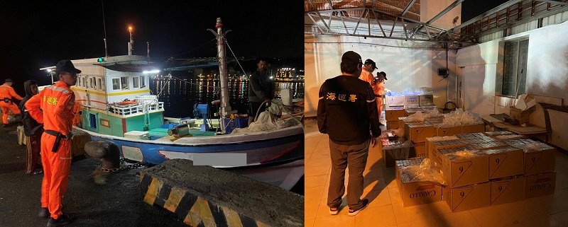 海巡署偵防分署高雄查緝隊與偵防查緝隊及南部分署第五岸巡隊、高雄市政府警察局刑事警察大隊偵一隊三分隊等單位於今(114)年3月23日於高雄旗后漁港查獲漁船「金○發」漁船走私菸品,市價高達120萬元。