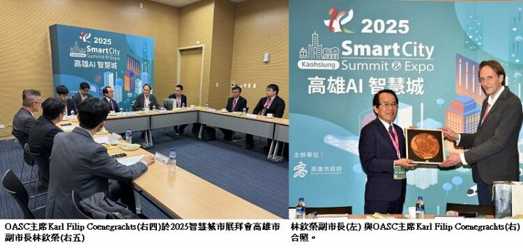 今(114)年3月智慧城市展期間,OASC主席Karl Filip Coenegrachts與資深技術顧問Alex Gluhak曾拜會高雄市副市長林欽榮,雙方深入交流智慧城市發展、數據共享、開放標準及主權式AI。Karl高度肯定高雄在智慧城市與城市級主權AI的前瞻佈局,並極力邀請高雄加入OASC智慧城市網絡組織,以及參加2026年1月在葡萄牙舉行的OASC年會,分享高雄在智慧治理、數位轉型及主權AI的成功經驗。