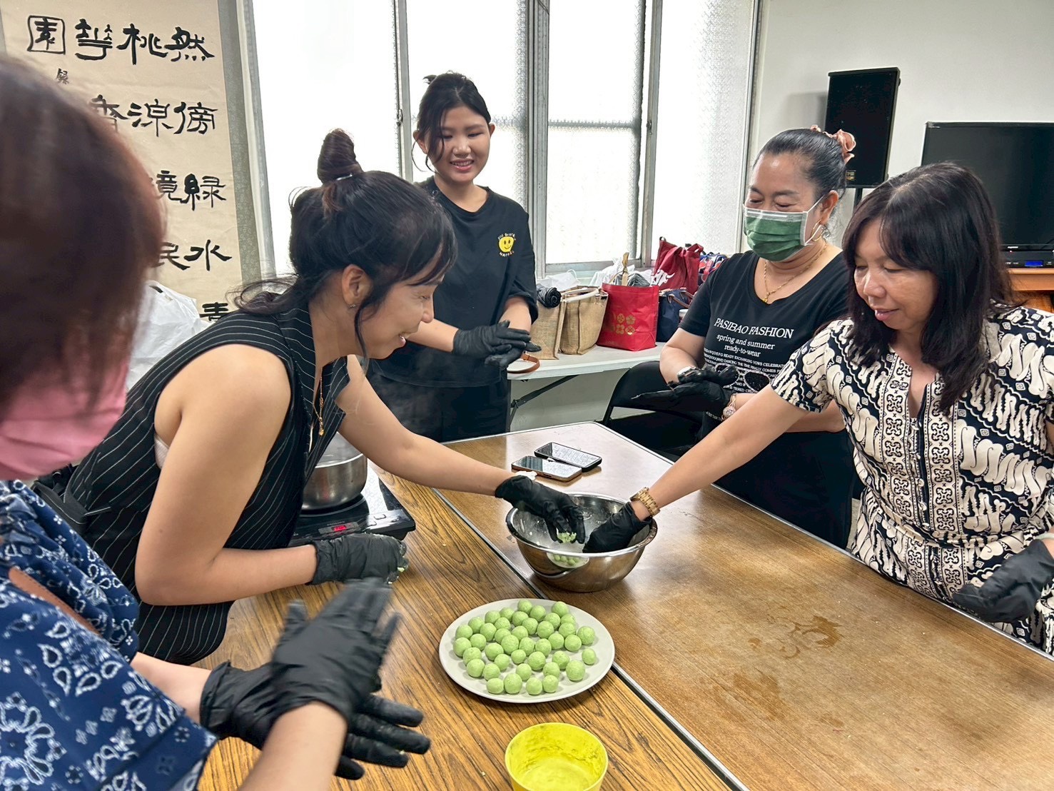 最受矚目的手作「三色糰子」體驗,大夥先將糯米粉與嫩豆腐揉合成團,再分別調製粉紅、綠色與白色的小糰子,煮熟後以竹籤串好,淋上醬油和黑糖調製而成的醬汁,甜鹹交織、口感Q彈,與台式麻糬截然不同。越南籍學員小芳邊吃邊說:「沒想到自己做的糰子這麼好吃,我要帶食譜回家給孩子試試看!」在美食、文化與笑聲交織下,活動圓滿落幕,學員們不僅感受到節慶氛圍,也帶回滿滿的暖心回憶。