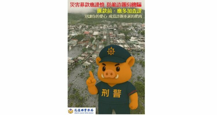 花蓮縣警察局再次提醒民眾,若想捐助災區,應透過政府公告的正式捐款帳戶或有公信力的慈善機構進行,不接受來歷不明帳號、不點擊陌生連結、不任意提供個資。此外,請勿被「限時捐款回饋」、「捐款抽獎」、「轉帳送好禮」等噱頭吸引,這些往往是詐騙者慣用的引誘手法;另外,即使對方聲音與親友相似,也要留意是否為AI變聲技術或盜用照片與個資的詐騙手法。若民眾發現親友的社群帳號異常發文或突然借款,應立刻透過電話或當面聯絡方式,進行二次查證,不要僅憑文字訊息或語音即匯款,以免掉入詐騙陷阱。