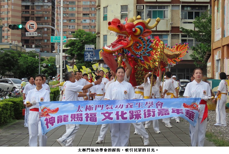 今日的嘉年華會,數百名師兄、師姐從水源路道館徒步,沿街舞著巨龍走到捷運站,沿途所經,吸引無數的目光,因為它有別於一般廟會的活動。