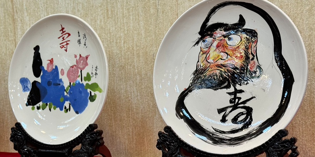 羅雪珠說,今年為提昇敬老活動文化內涵,特地邀請學會15位藝術家彩繪陶盤做為禮品致贈給百歲長者,圓型的陶盤具有福壽圖滿之意,陶盤上彩繪著桃子、牡丹、石榴、柿子及書寫壽字代表著長壽、富貴長春、多子多孫及事事吉祥如意等祝壽詞意。