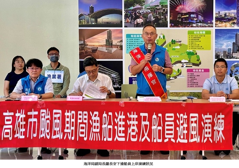 高雄市政府海洋局今(8)日於前鎮漁港船員會館辦理「颱風期間漁船進港及船員避風演練」,共動員市府團隊、海巡署、漁業署、漁會、高市三大遠洋公會及遠洋漁業業者等單位共襄盛舉,特別感謝財團法人中華民國佛教慈濟慈善事業基金會及臺灣基督長老教會海員漁民服務中心來協助,提供福慧床及翻譯量能,使整個模擬演練過程順暢逼真,充分展現各單位防災應變處置能力,以確保颱風期間漁船進港及船員生命安全。