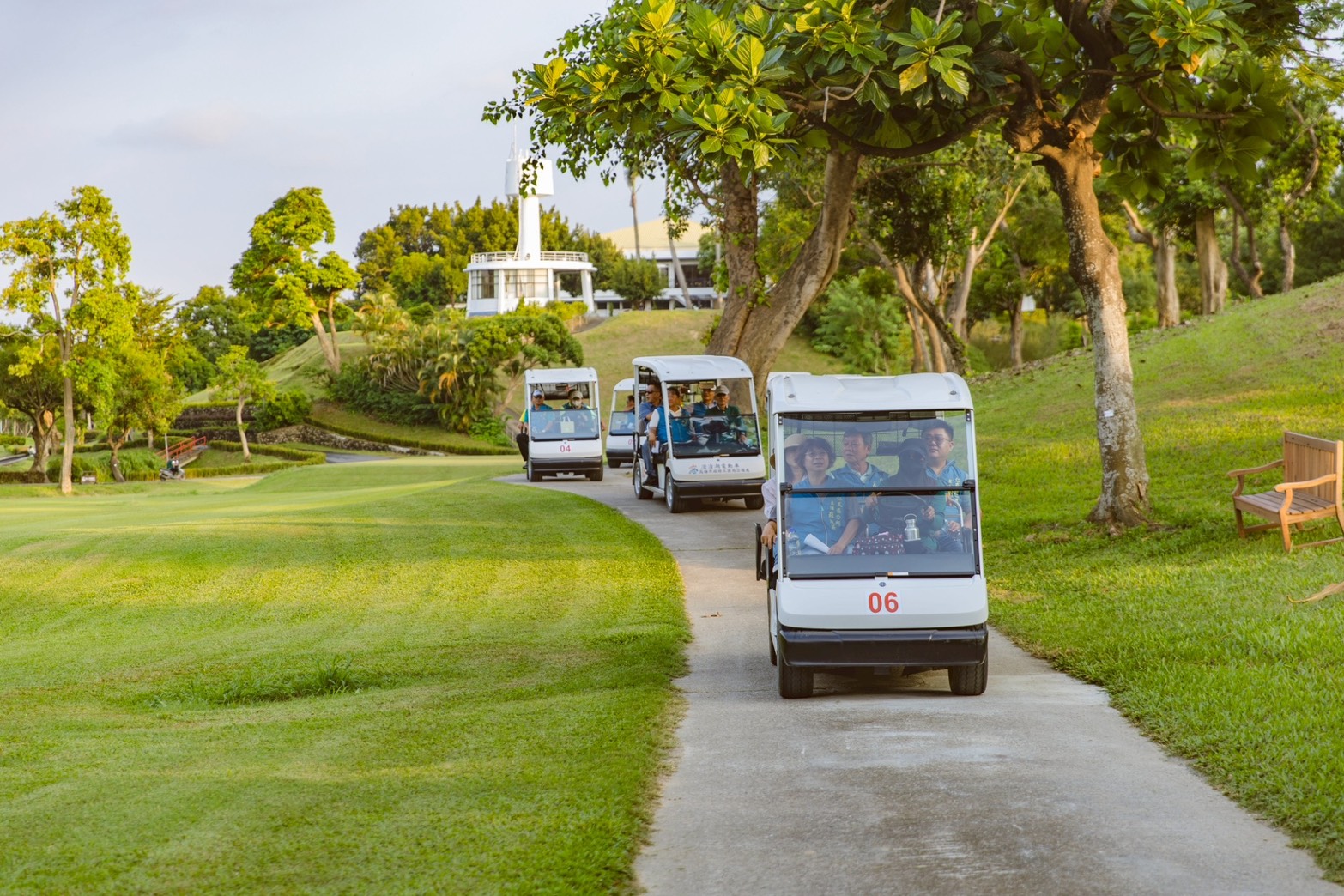 活動當天下午,里長搭乘高爾夫球車穿梭園區,沿途停靠觀景點、湖岸、草坡步道等,實地感受果嶺自然公園的獨特地形與植被配置。里長們不時停下拍照、討論、互動交流,對未來向里民介紹此處讚聲不斷。