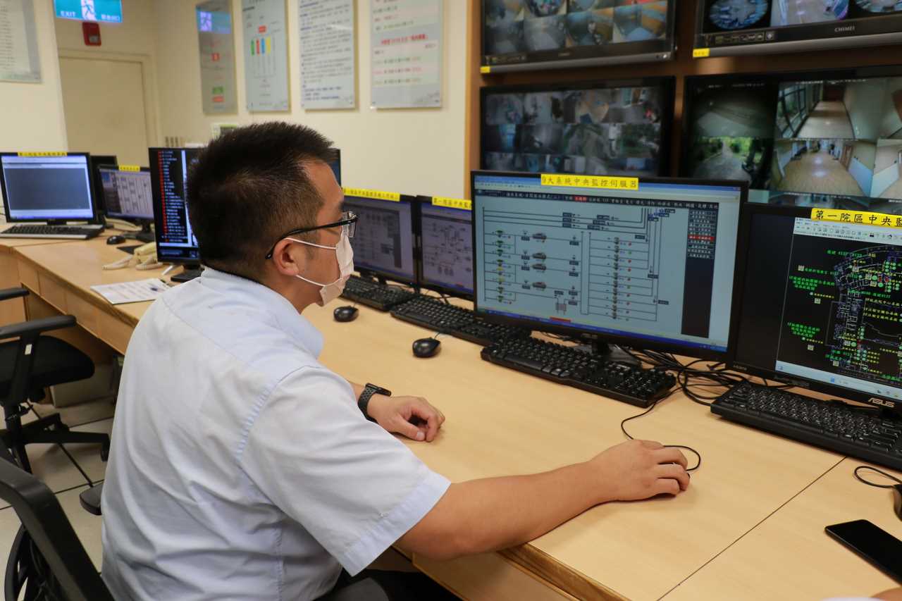 工務部門導入「智能空調管理系統」,透過能源管理平臺即時監控院區6臺主機、151臺空調箱與1650臺送風機運作情形,並依區域人流自動調整溫度與啟停時段。已有九成設備已可遠端控管,有效減緩年用電量增幅,在維持舒適度的同時,亦成功達成節能減碳目標。