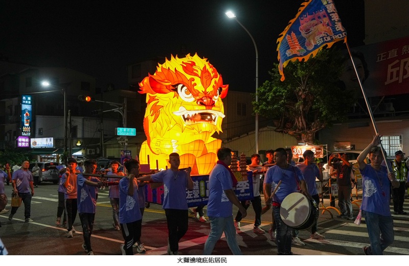 在火獅點睛會場,DJ妖嬌攜手電音三太子跨界演出「萬年電音SHOW」、左營文武聖殿獅陣帶來祥獅獻瑞表演、氣勢磅礡的龍陣及備受期待的火獅隊伍接續進場,吸引大批民眾爭睹威凜火獅,現場氣氛熱鬧沸騰。今年火獅以傳統技藝工法製作,由參與台灣燈會設計製作並榮獲法國創新設計大賽(NDA)金獎、英國倫敦設計獎金獎以及法國設計獎白金獎的國際級花燈藝術師黃文全親自監製,以象徵富貴的元寶獅為設計發想,台座造型融入左營蓮池潭指標龍虎塔與孔子廟意象,展現在地文化風采,寓意吉祥祈福。