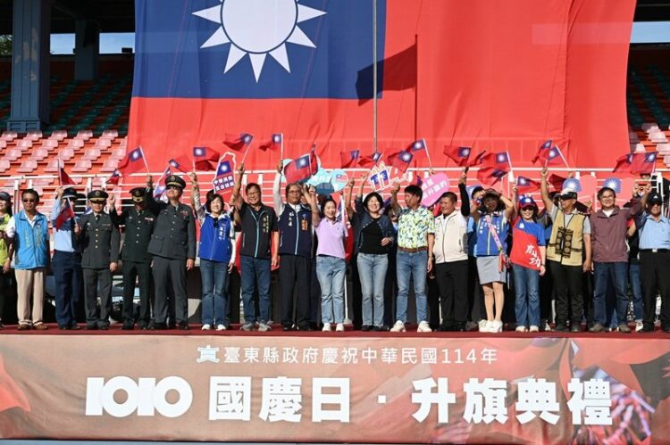 為慶祝中華民國114年雙十國慶,臺東縣政府於今(10)日在縣立體育場,舉行升旗典禮,現場湧入約3,000名鄉親,熱情揮舞國旗,熱烈參與。縣長饒慶鈴帶領民眾高唱國歌,祝賀中華民國國慶日。