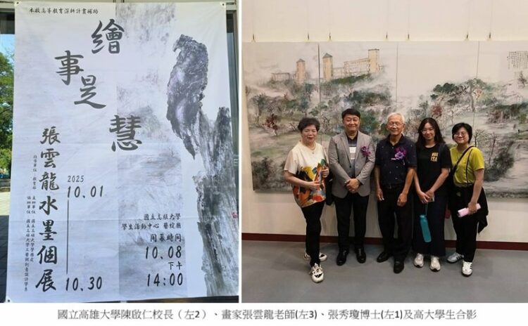 高雄大學藝綻廳近日推出藝術家張雲龍老師的水墨個展《繪事是慧》,以「繪畫即智慧」為題,展現他以筆墨對教育、人文與美學的深刻思考。展覽以校園景觀為創作主題,將熟悉的高大建築、林蔭與廣場化為充滿詩意的畫境,喚起觀者對「教育之心」的感悟。