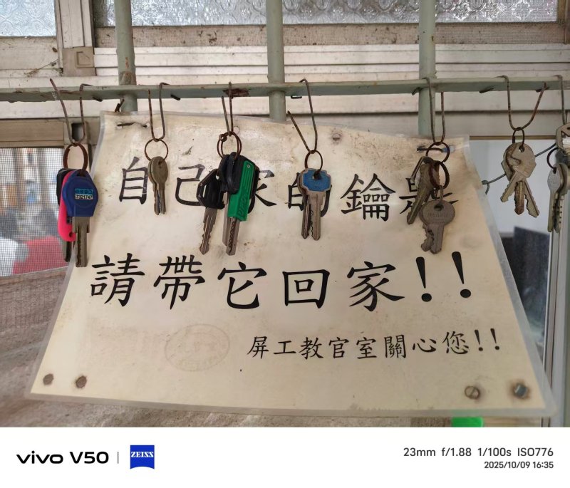 屏東高工教官室大門旁邊,常常掛幾串鑰匙。醒目的字,寫著:「請帶它回家」。這是貼心的失物招領,裡面留著幾個有待深入思考的問題。