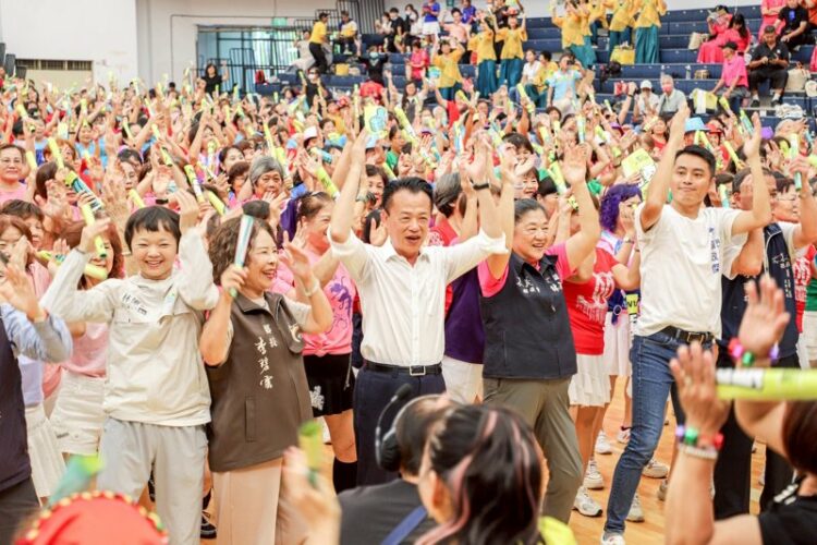 各鄉鎮共50支隊伍的長輩們精心打扮,帶來多樣舞蹈、功夫等展演,最後更由舞蹈老師領軍,邀請縣長與長輩們嗨跳「台灣尚勇」應援舞,眾人揮動雙手、步伐整齊,氣氛嗨到最高點。