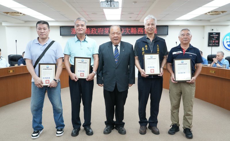 澎湖縣長陳光復今(13)日於縣務會議中公開表揚多項績優單位及人員,肯定各界在財政管理、防災整備、環境守護及醫療照護等領域的傑出表現,展現公私協力、攜手打造永續幸福島嶼的成果。