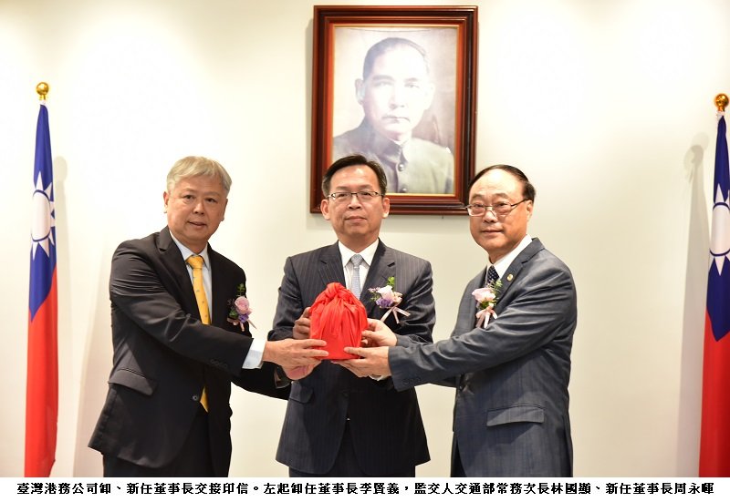 臺灣港務公司於今(13)日在交通部林國顯次長主持下,舉辦卸、新任董事長交接典禮,原任董事長李賢義卸任後,新任董事長由前交通部觀光署署長周永暉擔任。