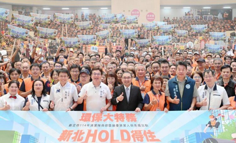 新北市環保局今(15)日舉辦「114年清潔隊員節暨績優清潔人員表揚活動」,新北市長侯友宜向全體清潔夥伴致上敬意。他表示,正是因為清潔隊員在第一線付出,新北市才能連續多年成為全國最乾淨的城市。為全力支持清潔工作,市府自明(115)年起,分四年新增227名清潔隊員、添購88輛清潔車輛,總投入超過5億元經費,做新北市清潔隊的最佳後盾,讓每位夥伴都能在更安全、舒適的環境中工作。