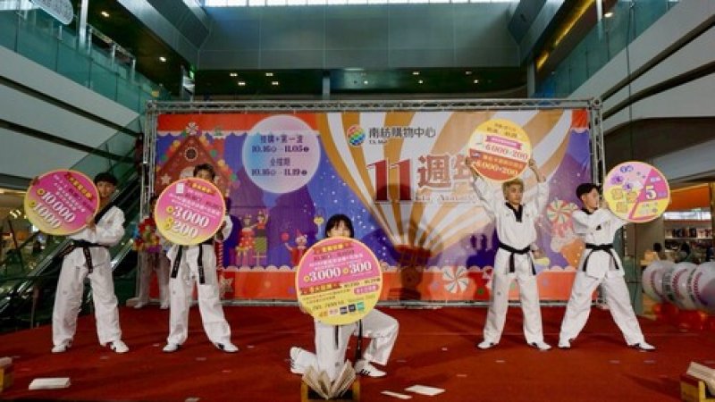 南紡購物中心於15日舉辦11週年慶誓師大會,由「We.R特技跆拳表演團」以震撼全場的跆拳舞蹈秀揭開序幕,並於表演中陸續揭示週年慶優惠。隨後營運部主管登場走秀,生動呈現各業種加碼回饋,現場氣氛熱烈。
