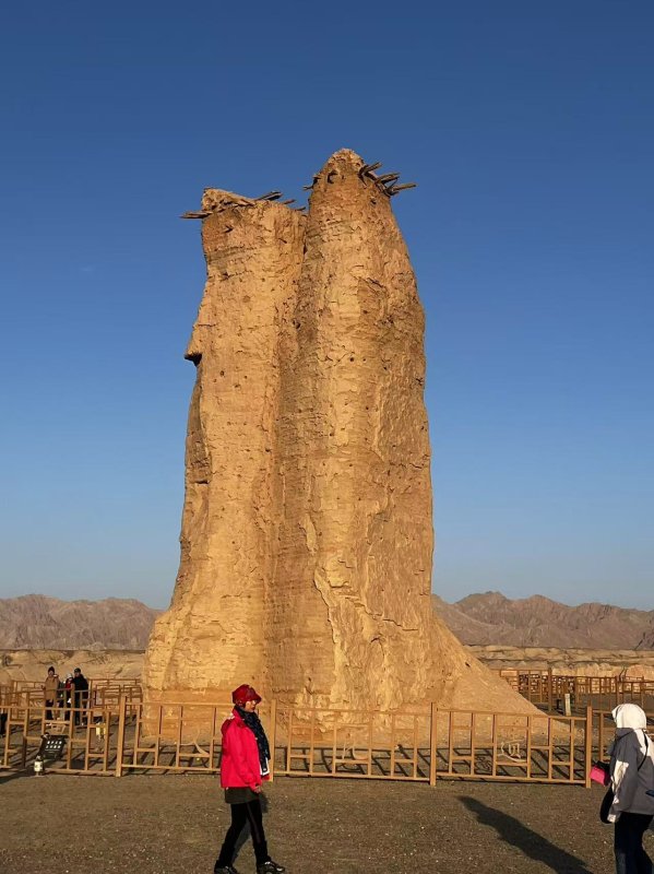 波新聞-戴貴立/新疆連線烽火連三月,家書抵萬金。烽火臺上面,狼煙一燒,煙直上蒼穹,遠處都可見。代表敵人來襲。這樣的烽火,必須建立高臺,白天煙,夜晚火,警告緊急,讓各地駐軍趕來解圍救難。烽火戲諸侯,想起周幽王烽火戲諸侯。為了妲己一笑,江山斷送。新疆這個烽火臺,近看才知道多高。圖:通爺提供