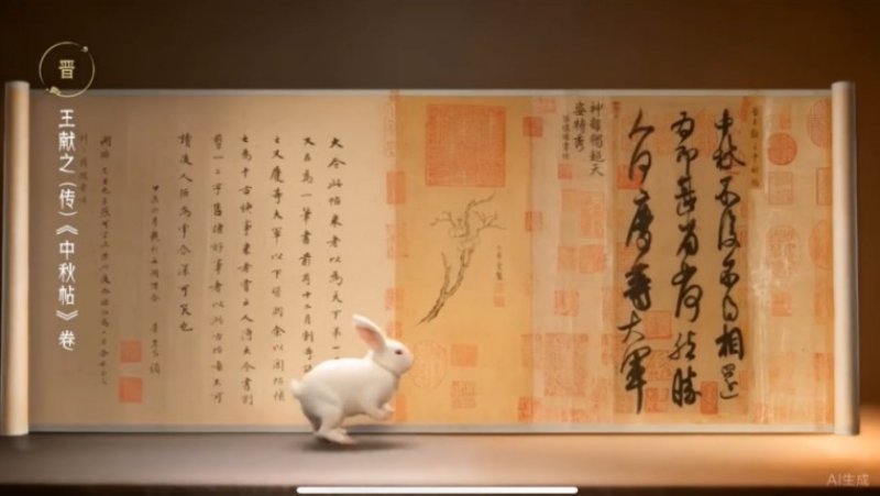 在該AI創意短片中,太和殿前的銅龜被玉兔喚醒,王獻之的《中秋帖》靈動飄揚,三彩馬揚蹄而起奔赴月宮……紫禁城中的文物瑰寶在AI大模型的助力下向觀眾生動“走”來。
