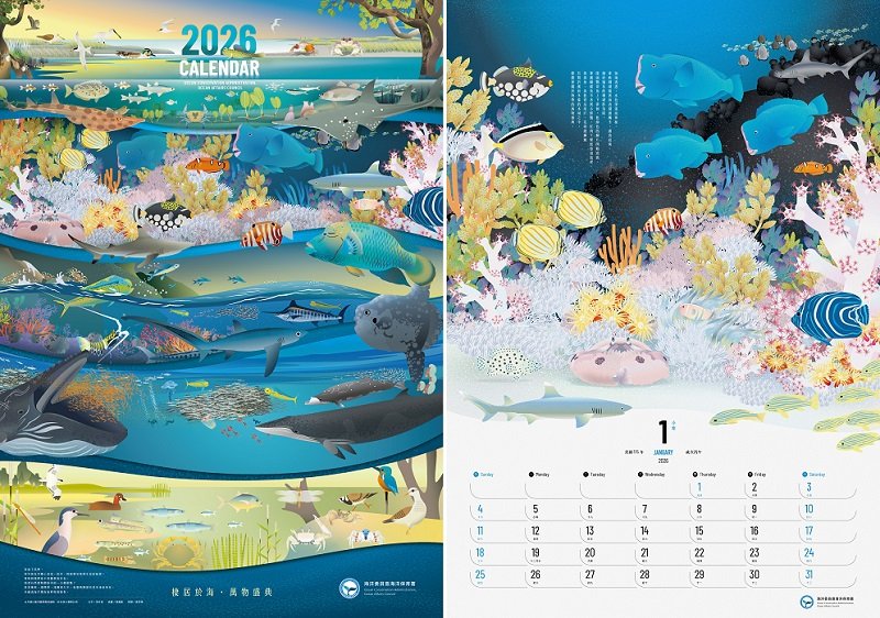 海保署推出2026海洋保育年曆《棲居於海・萬物盛典》以12棲地描繪萬物共生之美 即日起開放預購