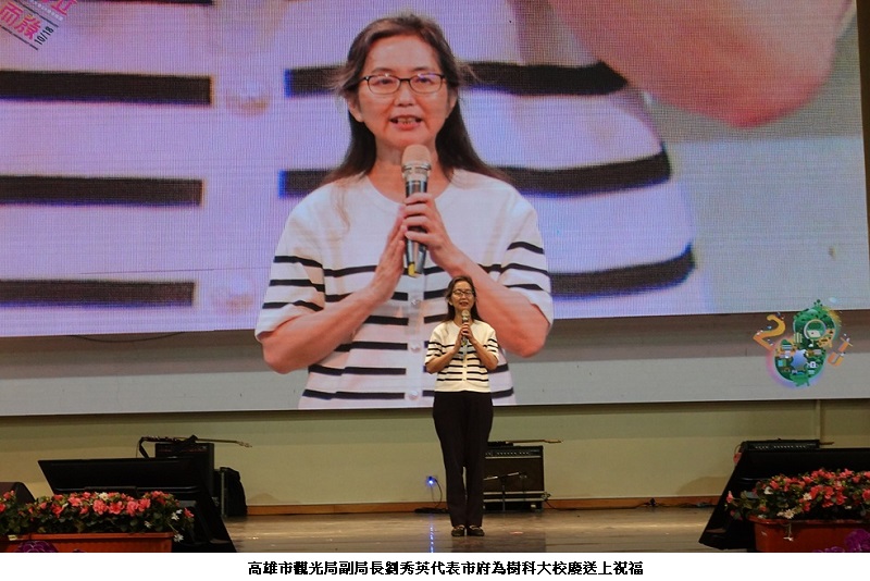 高雄市政府觀光局劉秀英副局長則提到與樹德科大深厚的淵源,包括高雄電影節和青春影展等多項活動都有樹德師生的參與之外,也攜手合作行銷大高雄觀光產業,感謝學校師生長期挹注並參與市府各項公共活動,祝福學校校運昌隆。