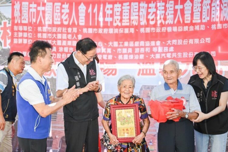 桃園市長張善政今(18)日上午前往大園區,出席「114 年度重陽敬老表揚大會暨節能減碳宣導」活動。張市長表示,很高興看到現場有許多身體健康、充滿活力的長輩參與活動,這次表揚「白金婚」、「鑽石婚」與「金婚」,分別象徵結婚滿70年、60年與50年;其中結婚超過70年的長輩如今已高齡近九旬,仍相互扶持、恩愛如昔,攜手走過漫長歲月,不僅是家庭楷模,更是社會典範。