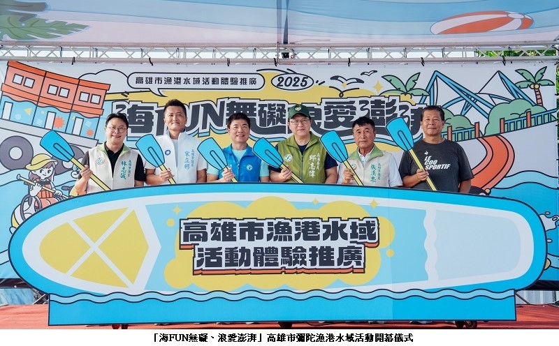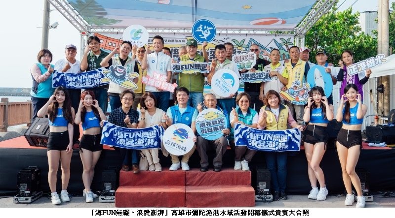 高雄市政府海洋局主辦的「海FUN無礙、浪愛澎湃」漁港水域系列活動,今(18)日於彌陀漁港海岸光廊盛大登場,現場不僅設置全新「無障礙水域設施」,更由雙人水上鋼鐵人以結合音樂與高難度特技的震撼演出揭開序幕,吸引大批民眾駐足觀賞。由高雄市政府海洋局局長石慶豐、立法委員邱志偉、市議員宋立彬、林志誠、張漢忠,以及彌陀區長陳景星、彌陀區漁會理事長莊添壽等貴賓齊聚,共同見證高雄邁向「全民親海、無礙共融」的嶄新里程碑。