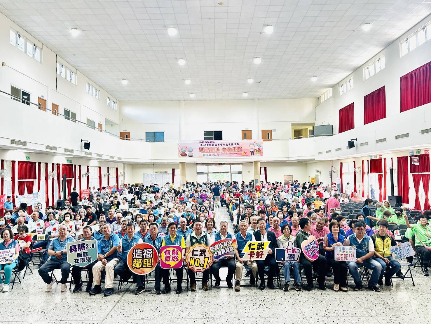 為迎接九九重陽敬老佳節,高雄市仁武區公所於10月18日上午在仁武里里民活動中心盛大舉辦「樂活仁武‧九九重陽」敬老活動暨特優與資深鄰長表揚典禮。現場氣氛熱鬧溫馨,吸引立法委員、議員、各里里長及約7,000位長輩熱情參與。陳瑞勇區長代表陳其邁市長向全區長輩致上最誠摯的祝福,祝福阿公阿嬤健康長壽、幸福久久,並感謝鄰長們長年來無私奉獻、服務基層的辛勞。