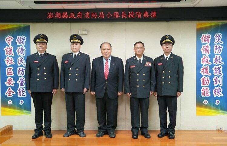 陳光復為消防局3位小隊長晉陞授階 期勉承擔責任、持續守護澎湖安全