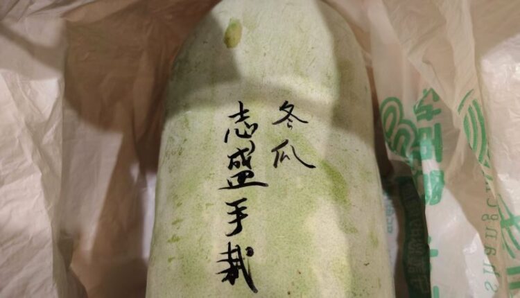新園一位篤實業餘老農阿盛,種植冬瓜有成,不是賣,是送他高中同窗。