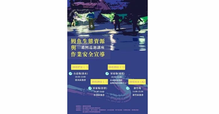 漁業署提醒,捕撈鰻苗是臺灣沿海漁民冬季重要傳統產業之一,因在暗夜環境作業,再加上冬季天候寒冷海象不穩定,使岸際捕撈鰻苗作業風險較高。捕撈鰻苗業者除了應遵守相關主管機關公告岸際或海域活動安全相關規定,作業期間務必穿著救生裝備(如救生衣等)並注意天候海象,賺鰻金之餘,更要顧及人身安全。漁業署說明本年度將於10月27日至31日假新北淡水、屏東枋寮、東港、宜蘭頭城及新竹辦理鰻苗捕撈宣導會,說明捕撈作業相關注意事項,以提高業者作業安全意識。