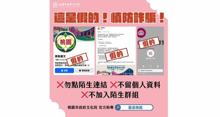 詐騙又起!粉專再遭冒名,桃園市政府文化局呼籲切勿點擊不實網址