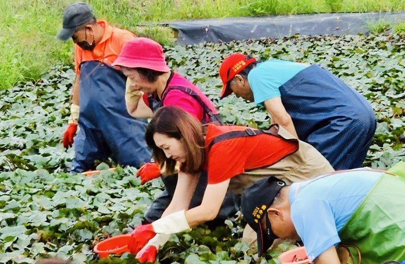 李雨庭表示,拷潭社區以盛產菱角聞名,此次參訪除品嘗當地鮮甜可口的菱角外,還親身體驗了菱角染布綁紮、菱角田生態導覽、穿青蛙裝下田採菱角、洗剝菱角與蒜味菱角品嘗等活動。透過親身參與,讓大家更深入認識在地農產產業鏈與生態環境的永續發展。