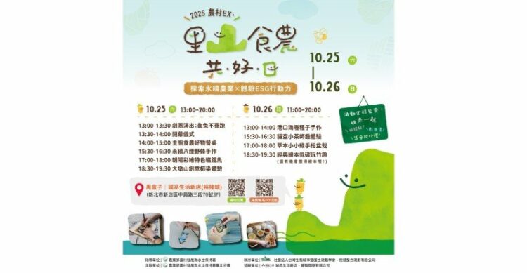 為推廣里山倡議與食農教育,展現北部地區農村多元特色,農業部農村發展及水土保持署臺北分署將於10月25日至26日在誠品生活新店3F黑盒子舉辦「農村EX・里山食農共好日」,活動串聯在地青農、社區夥伴等單位,透過展攤、體驗與交流,將教育、環境與社會參與的永續精神帶入市民生活,預計吸引眾多家庭與關注永續的民眾共襄盛舉。