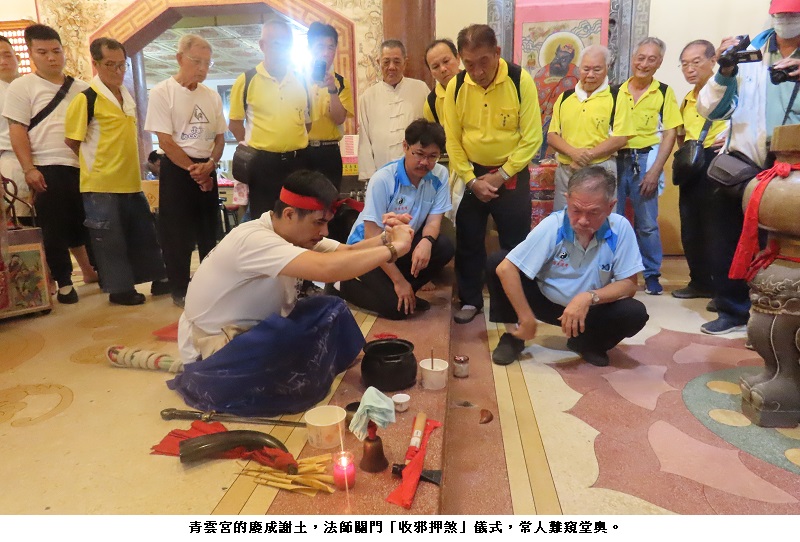 昨天的慶成謝土儀式,法師施法時先將廟門關上貼了封條,禁止閒雜人進出,直到傍晚完成儀式後才重啟廟門,其中法師在廟內「收邪押煞」後再開門送土這一幕,一般人難得一見,也難「窺睹堂奧,欽蹈明規」,諸多細節內行的才懂,有些禁忌外人還得「閃避一下」。