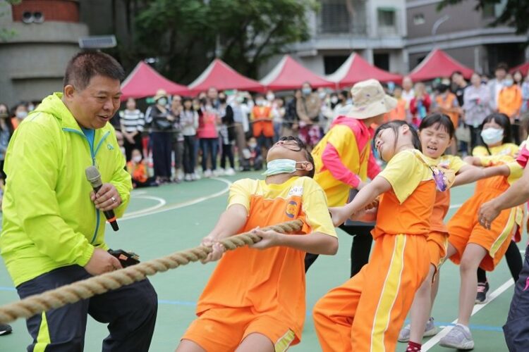 圖/李明宗校長在拔河比賽中親自當裁判,為孩子們加油