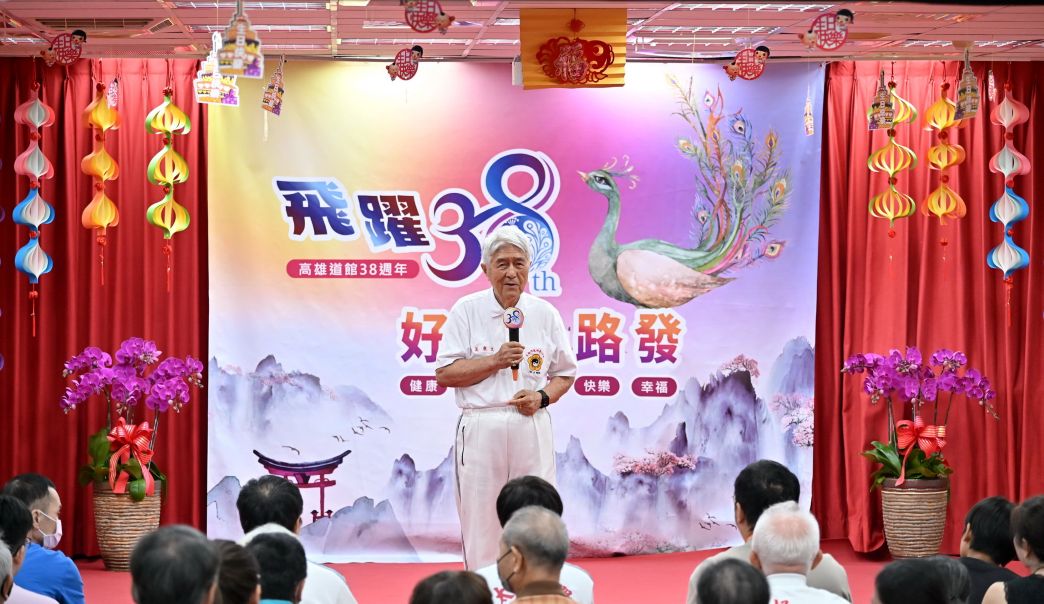 太極門高雄道館10月26日舉辦「飛躍38,好運一路發」38週年館慶活動,邀請各界貴賓及親友齊聚一堂,現場洋溢著喜悅與祥和氛圍。當天除多位民代、媒體及學界重要嘉賓蒞臨,還有來自各界致贈墨寶、來函或海報祝賀太極門高雄道館生日快樂。