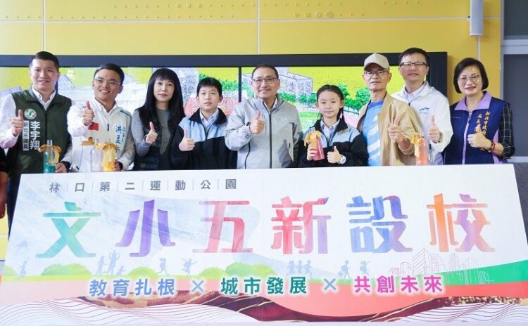 侯友宜表示,因應整個林口區域的人口成長及就學需求,市府必須及早預備,正式宣布啟動「文小五新設校」籌備規劃工作,目標是123學年度完工招生,並以整合教育、托育與社福功能為方向,致力讓林口地區學生能安心上學,在地的「教育、托育、社福」需求都能被滿足。