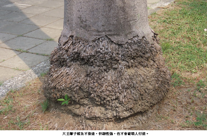 國內出了名的行道景觀,當屬台大校門口那兩排大王椰子及總統府前的大王椰子,都超過一甲子,一直矗立沒倒過。它們都夠格擔任大王椰子、蒲葵韌性植物的「代言人」。