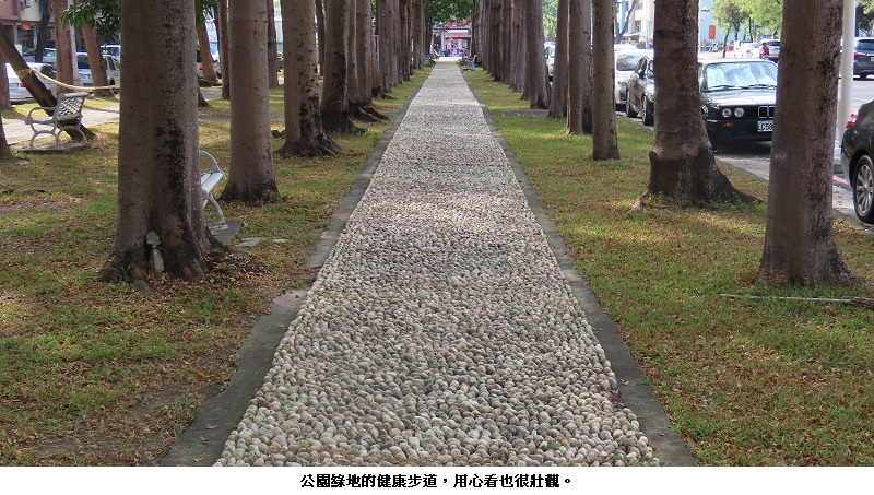 流風所及,後來那幾年間開闢的公園綠帶,都跟著要求舖設健康步道,這就是現今到處可見健康步道的原因,附近民眾,有空就去踩踏,回到家都說「小踩養身,大踩治病」,鼓勵週邊的親友多多去踩,有益無害。