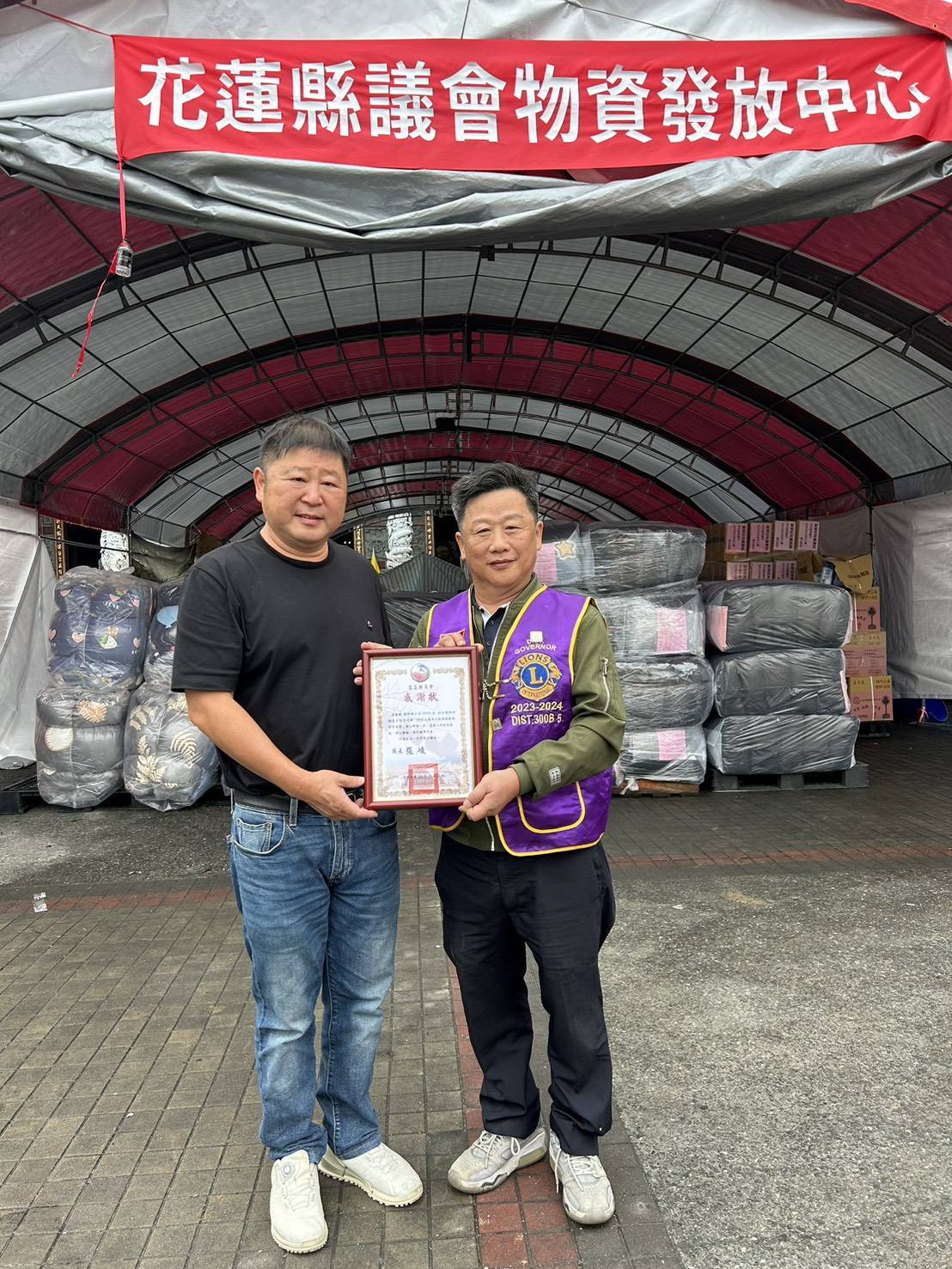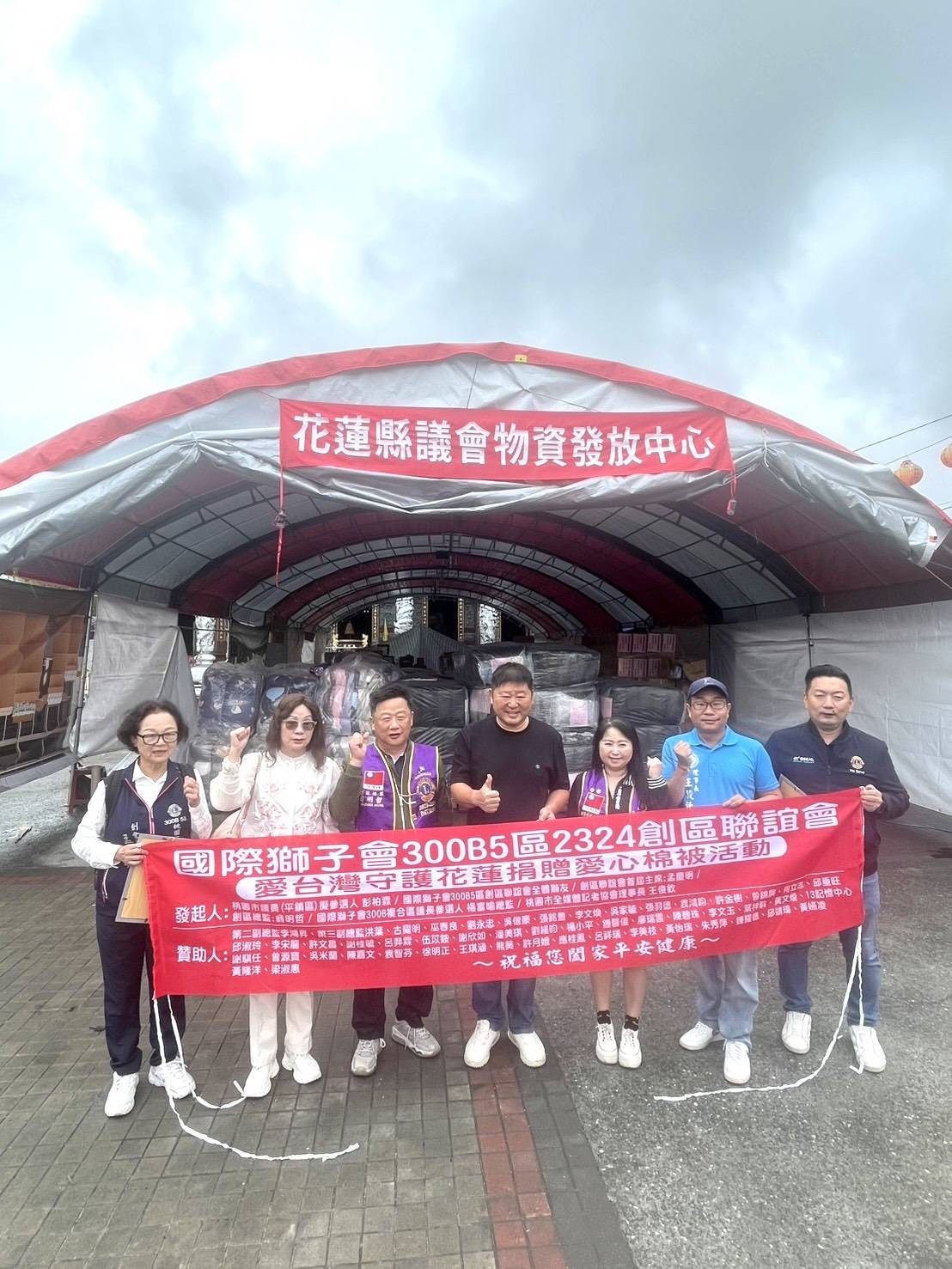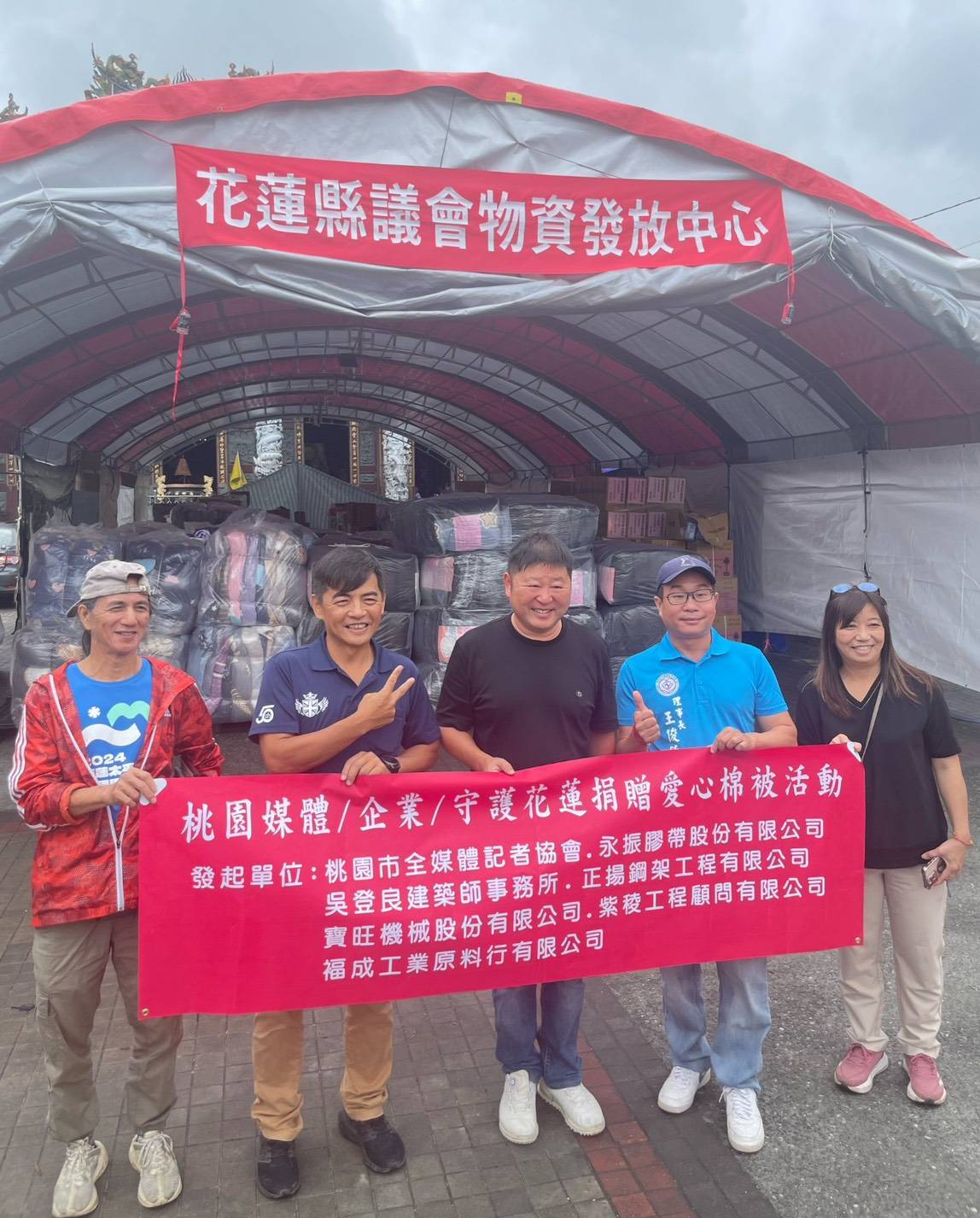 桃園市全媒體記者協會秉持「新聞有溫度、媒體有愛心」的精神,號召桃園市多家企業共同響應「用愛心守護花蓮」捐贈行動。此次由永振膠帶股份有限公司、吳登良建築師事務所、正揚鋼架工程有限公司、寶旺機械股份有限公司、紫稜工程顧問有限公司、褔成工業原料行有限公司等六家愛心企業攜手支持,並獲國際獅子會300B5區2023創區總監翁明哲及平鎮區議員參選人彭柏霖熱情參與,2024總監鄒秀鳳及近50名獅友們共同捐贈1000套愛心棉被送至花蓮災區,為受災民眾傳遞溫暖與關懷。花蓮縣原漾藝文發展協會也捐贈善款於議長。